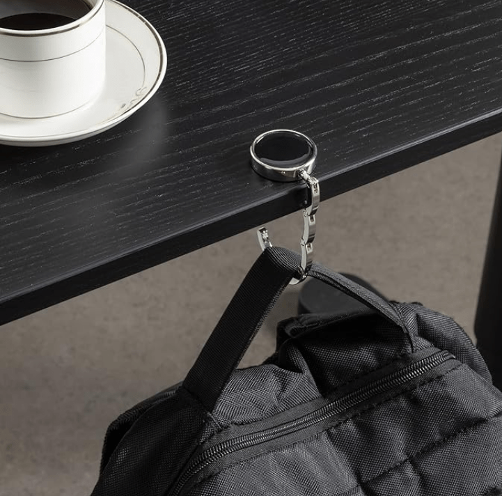 - A simple but super useful gadget. I originally got this for my wife to keep her purse off the floor at restaurants/cafes, but it comes in a pack of two, so I started using mine to hang my headphones at my desk.